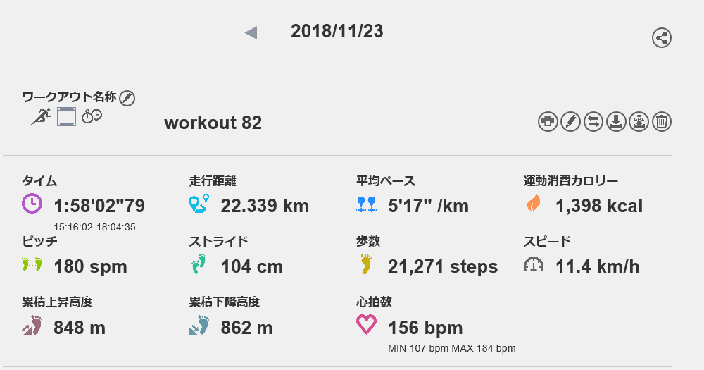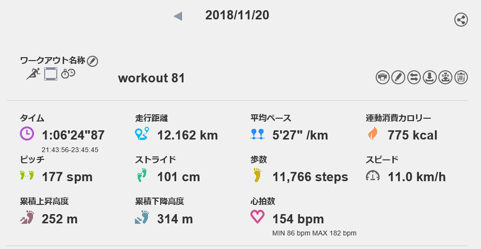 11月25日の走行距離 21.97km (5分23秒/km)(155bpm)