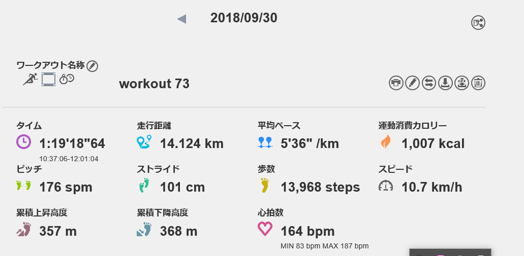 9月30日の走行距離 14.12km (5分36秒/km)(164bpm)