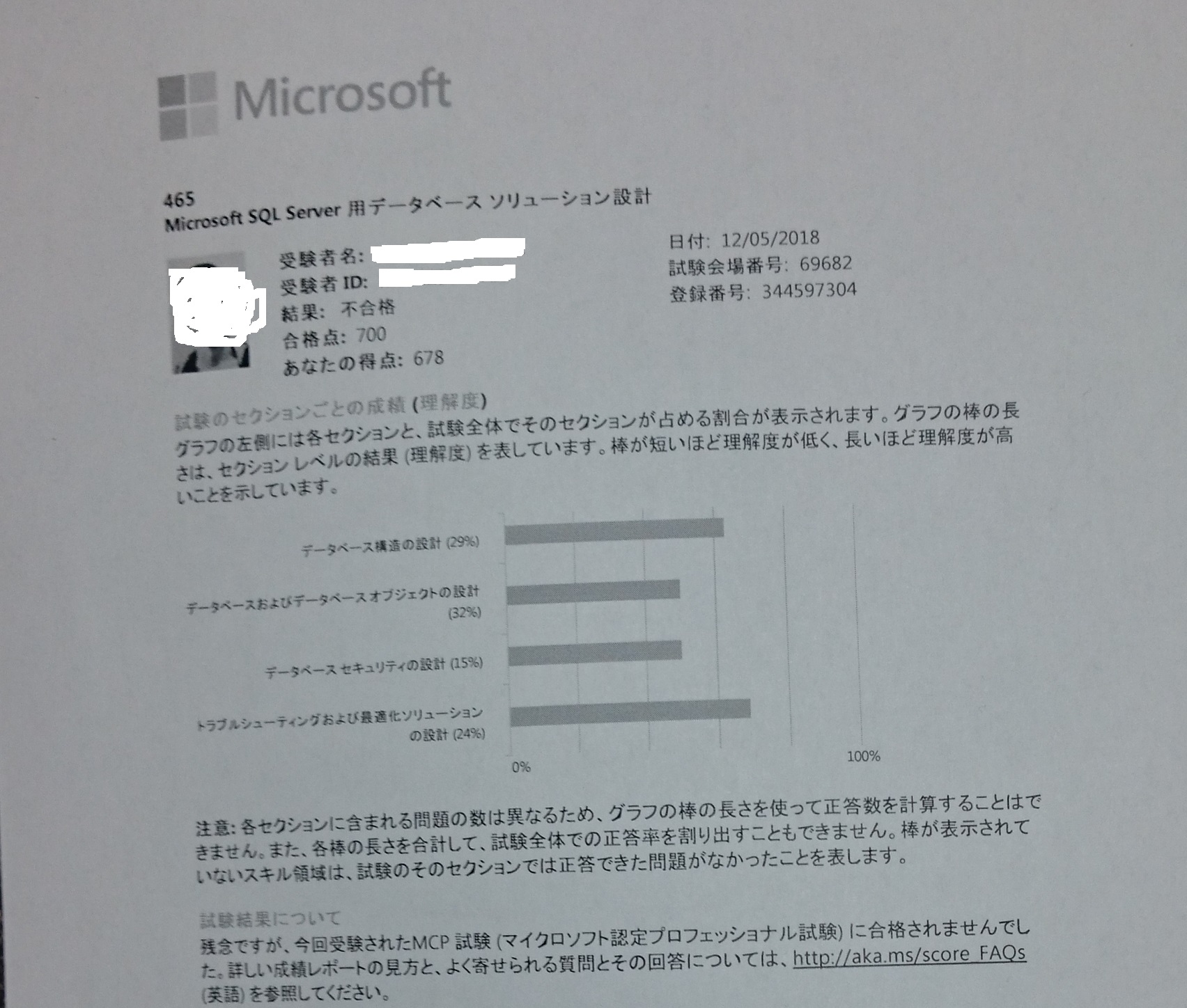 70-465 : Microsoft SQL Server 用データベースソリューション設計に不合格だった。