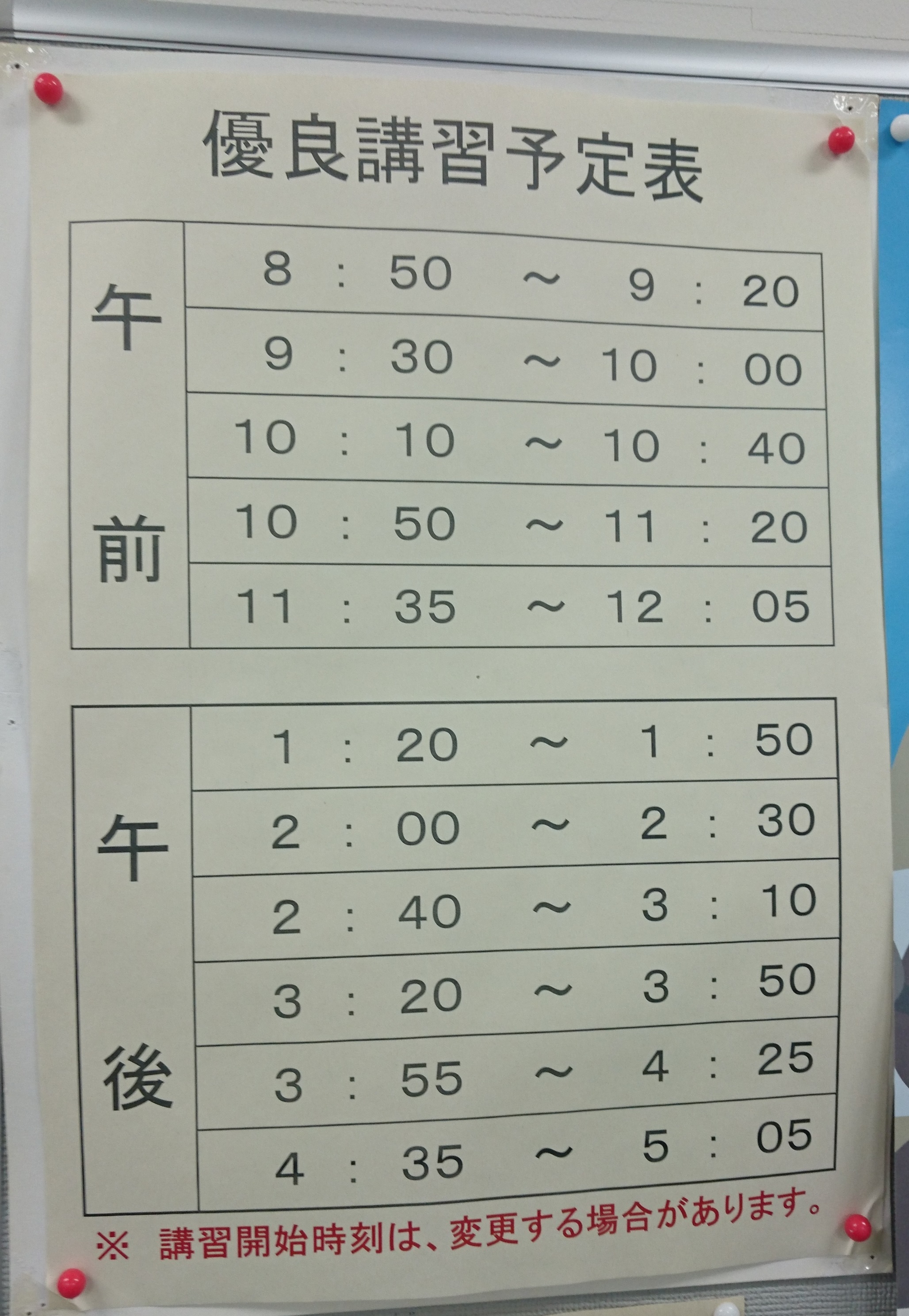 講習の開始時間にちょっと遅れていた。